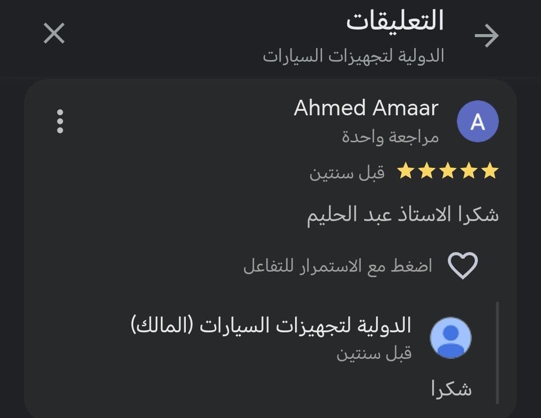 اراء العملاء آراء عملائنا نعتز بثقة عملائنا وآرائهم التي تعكس جودة خدماتنا وحرصنا الدائم على تقديم تجهيزات سيارات احترافية تلبي مختلف الاحتياجات